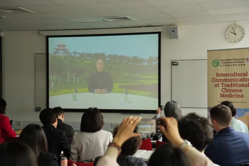 5月2日,英国兰卡斯特大学孔子学院举办“中医教育全球化与跨文化传播国际论坛”,中国工程院院士张伯礼视频致辞。新华社记者 郑博非 摄