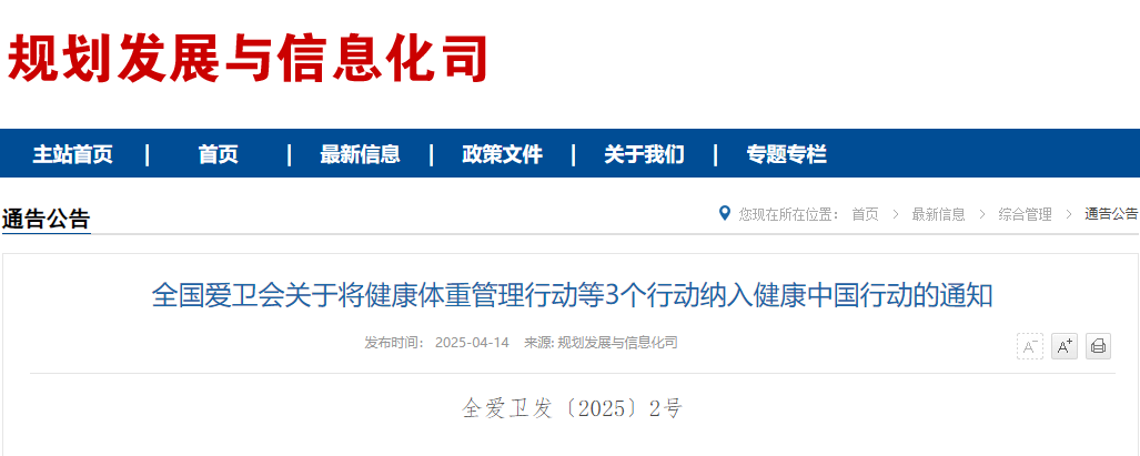 明确了到2030年,实现体重管理支持性环境广泛建立,全民体重管理意识和技能显著提升,健康生活方式更加普及,全民参与、人人受益的体重管理良好局面基本形成,人群超重肥胖上升趋势初步减缓,部分人群体重异常状况得以改善。
