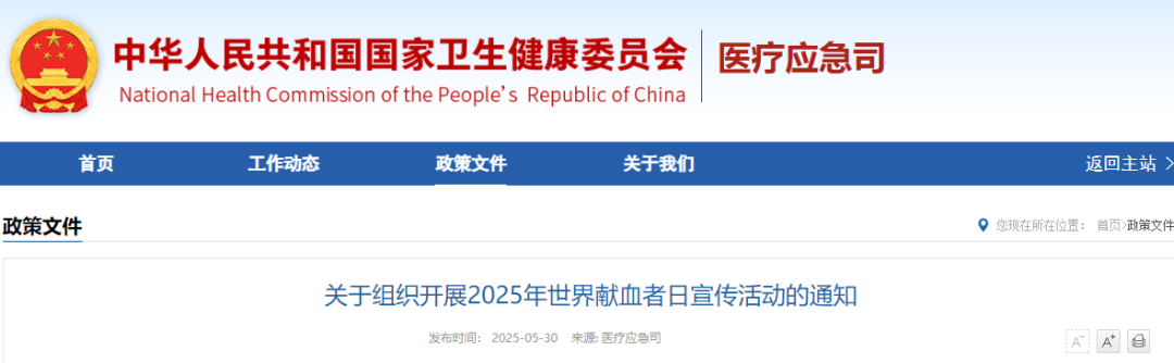 (一)各地卫生健康行政部门、团委要贯彻落实《关于印发无偿献血倡议书的通知》(国卫医急函〔2025〕94号)要求,结合世界献血者日这一重要节点,做好《无偿献血倡议书》的宣传动员工作,提高知晓度和覆盖面,加强团体无偿献血组织保障。