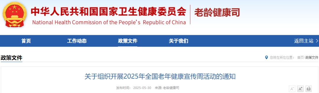 发布时间:2025-06-03 11:04:31 来源:老龄健康司